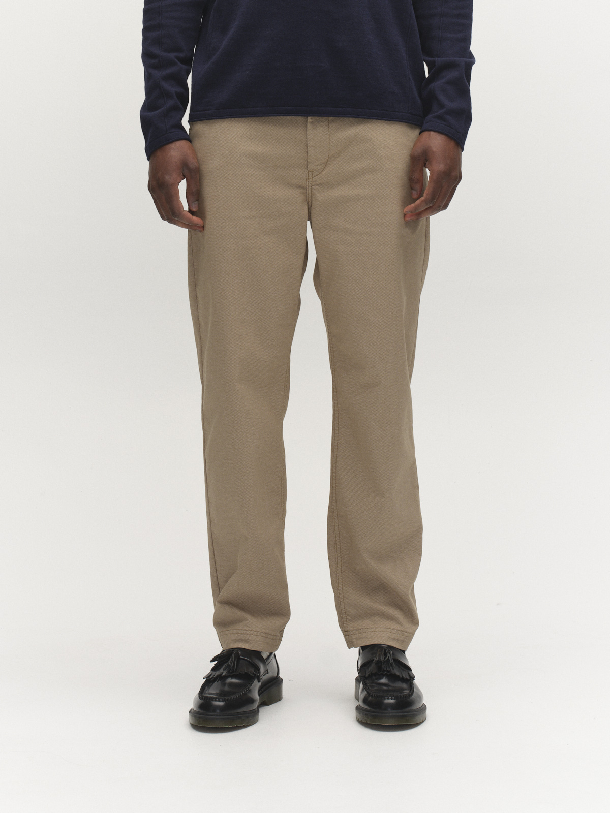 Chinos de corte cónico confeccionados con un tejido de mezcla de algodón de alta extensión para ofrecer comodidad y movimiento sin esfuerzo. Con un canesú de doble pinza, estos pantalones combinan un estilo clásico con una silueta moderna — un elemento esencial refinado que equilibra estructura y facilidad.