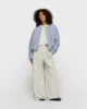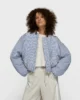 Chaqueta bomber acolchada de corte oversize con rayas diplomáticas, confeccionada en suave poliamida. Cuenta con bolsillos laterales inclinados con cierre de botón de presión, cuello redondo acanalado, cierre con cremallera, dobladillo elástico y puños elásticos, bordado ’10’ en la manga izquierda y etiqueta 10DAYS en la parte trasera.