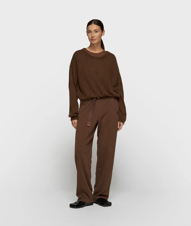 Suéter de punto ligero con ajuste relajado, hecho de una fina mezcla de alpaca y poliamida. Presenta cuello redondo, puños y bajo acanalados, y un bordado con el monograma ’10’ en la espalda. 50% alpaca, 37% poliamida, 13% lana