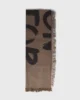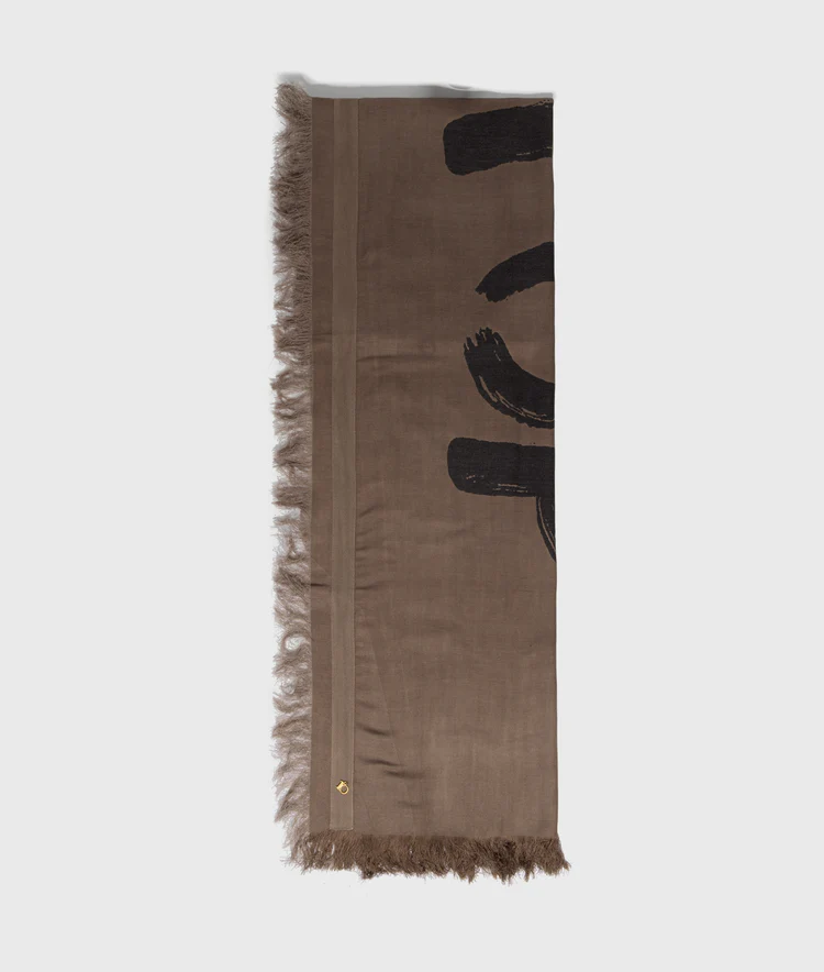 Bufanda, hecha de una mezcla aireada de viscosa. Diseñada con pequeños flecos, un estampado ‘Love on Top Painted’ con cuentas doradas en la letra L y un detalle sutil de cinta a lo largo del dobladillo con una cuenta monograma ’10’ al final. Dimensiones: 115 × 115 cm.