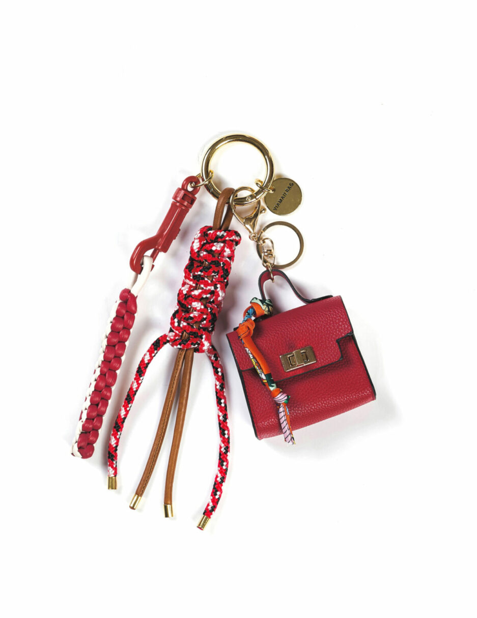 Un charm para bolsos o llaveros, fácilmente aplicable a cualquier modelo gracias a los anillos de apertura. Este accesorio versátil añade un toque de estilo único y puede usarse tanto como adorno para bolsos como un práctico llavero.