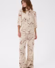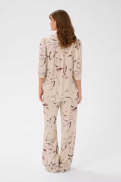 Camisa cuadrada con un estampado abstracto por todo el cuerpo, entallada con cuello puntiagudo y mangas rectas de 3/4. Frontal de botones y estructura relajada para un atractivo moderno.