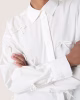 Camisa blanca de algodón con un corte relajado y pequeños lazos decorativos a lo largo del diseño. Un estilo clásico con un toque femenino, ideal tanto para el uso diario como para la oficina.