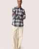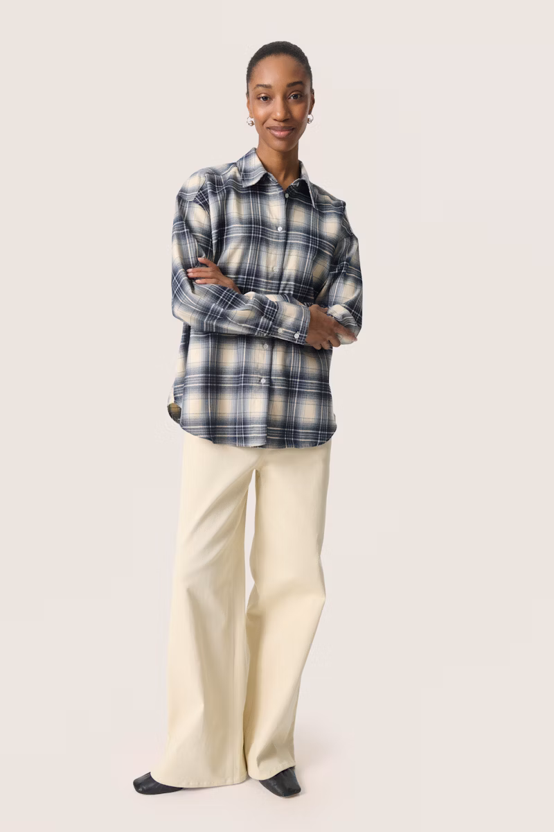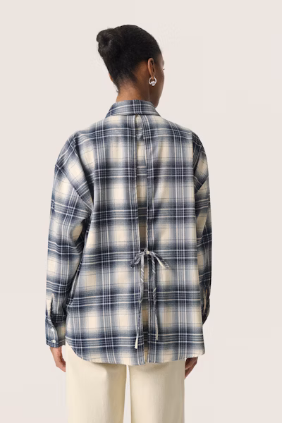 Camisa clásica con un toque moderno en un suave tejido a cuadros. El corte holgado y el sutil detalle de la lazada en la parte trasera crean un look relajado pero elegante.